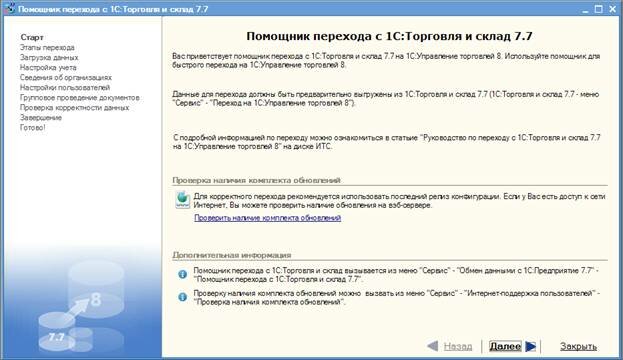 Компания "1С" настоятельно рекомендует рассмотреть возможность перевода систем, работающих на "1С:Торговля и склад 7.7", на "1С:Управление торговлей 8". Это будет способствовать повышению эффективности работы организаций за счет использования новых возможностей платформы "1С:Предприятие 8" и созданных на ее основе прикладных решений.